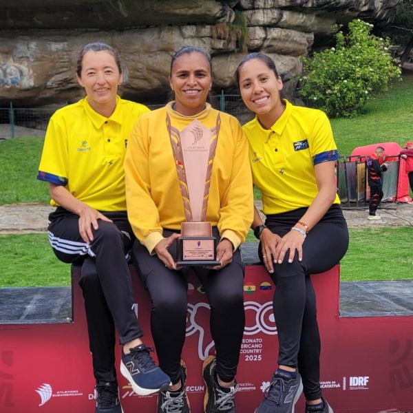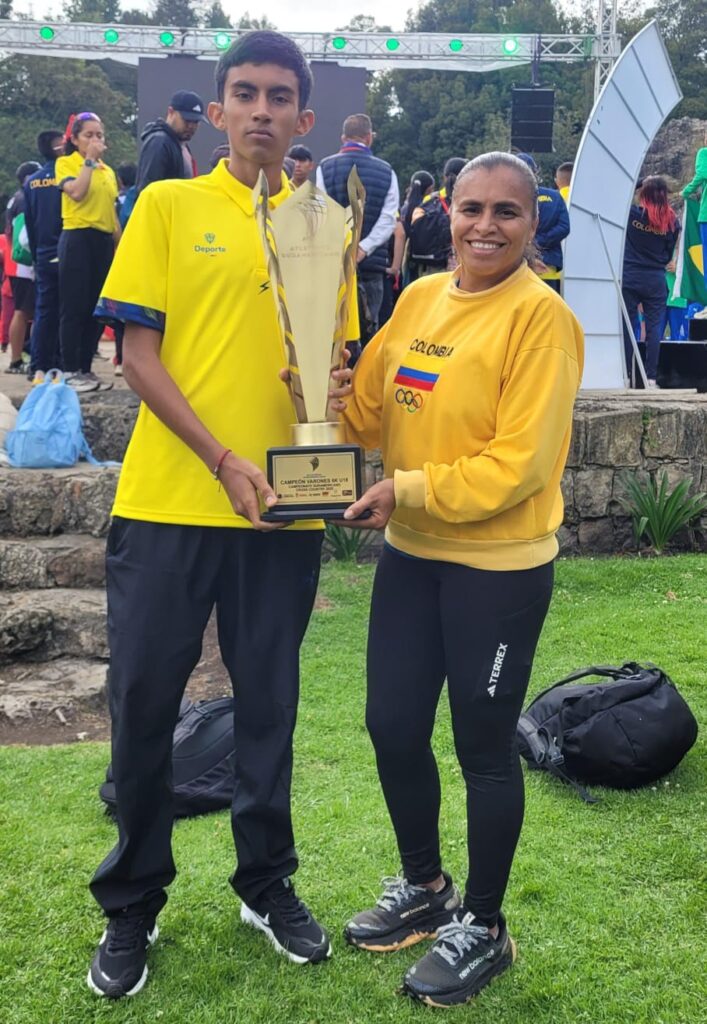 La profe Bertha Sánchez integrante del equipo colombiano como entrenadora y el atleta Juan Fernando Cardona Sánchez aportaron su granito de arena para lograr el titudo sudamericano de cross country categoría U18. Felicitaciones deportistas de HONOR